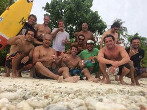 Macaronis é uma das ondas mais famosas e de alta performance. O zum zum zum na barco era de que a turma estava agoniada pra ir pra lá. Com as leis do surfe local, devido ao resort em terra, apenas dois barcos são permitidos por dia no pico e mediante reserva antecipada. Não lembro agora se não tínhamos reserva ou se, por sorte, só havia uma embarcação no pico. O fato é que desfrutamos de altas ondas em mais um dia clean e ensolarado. Nossa trip estava dos sonhos! A galera fazia a festa e foram muitas horas na água com todos já bastante soltos, inclusive disputando muitas ondas (risos). E essas disputas faziam a alegria noturna, quando as fotos feitas durante o dia por Bruno eram exibidas. Aplausos para as boas manobras, posicionamentos e muita zoação quando alguém aparecia na frente do outro exibindo aquela clássica rabeada (risos). A essa altura, a turma já estava se conhecendo e o puxador da zoação Marcelo Pretto, também neste quesito, já estava soltinho na vala.