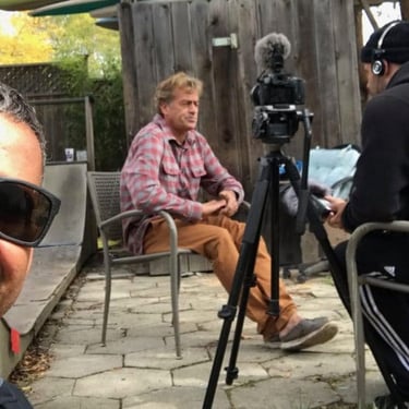 Ao anunciarmos nossa chegada via Whatsapp, lá aparecia Tom com seu casaco de flanela quadriculado, pois fazia demasiado friozinho. Apresentei a equipe com Luciano Burin, que fez os contatos, e também os videosmakers Antônio Zanella e Pietro França, sendo este último amigo dos filhos mais novos do Tom.