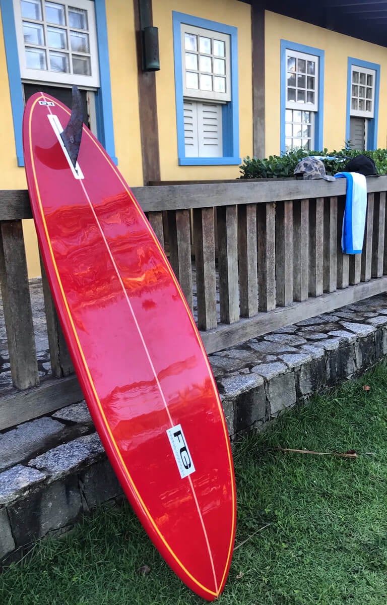 Pior, acabaram por detonar a estrutura da prancha que depois de um curto período partiu ao meio. A divisão da prancha logo deu origem a duas pranchas para pegar “jacaré”, com direito a um novo “outline” em ambas extremidades avariadas. Quando a primeira prancha de fibra chegou em minhas mãos, que aliás era da marca Girassol, se tratava de uma biquilha.